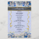 Grab yourself a unique wedding program that you can fully customise to make it special and unique to your wedding. the design comes with a frame where you can put your picture/photo with your man or with your woman, the frame that comes with beads will complement the photo of the couple inside it and will make the card look so elegant. Elegant Floral and Daisy classy and elegant wedding program card with blue and gold accent.