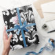 Elegant Damask wrapping paper roll. Blue and black colours.