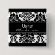 Elegant Damask Bridal Party Button - Usher