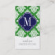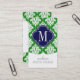 Elegant Damask Green & Navy Custom Monogrammed Business Card