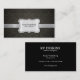 Personalised Business cards for interior designers. Black and Dark Grey Damask with metallic silver accents.