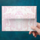 Lovely pink and white damask Invitation envelope, with the damask design on the inside as well. Very pretty added touch to your wedding invitations, thank you cards and other personal envelope needs. Customise the size of envelope you need and the paper stock. Personalise the text to suit your needs.