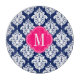 Fashion and elegant dark dark blue Navy and white diamond floral damask pattern.  Pink blue frame. Personalise it with your monogram, name or initials.  Click on the "customise it" button if you want to do any changes to the design.  Choose font style and colour. Trendy damask pattern for girly girls.