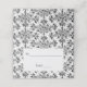 Custom folded table cards with script letters on an elegant damask pattern of vintage daisies and leaves in scrolls in black on white.