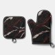 Elegant Dark Black Red Marble Oven Mitt & Pot Holder Set