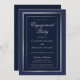 Elegant Dark Blue Silver Border Engagement Party Invitation