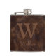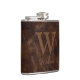 Elegant Dark Brown Cow Leather Texture Monogrammed Hip Flask