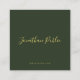 Stylish Modern Professional Gold Text Calligraphy Script Name Simple Design Template Dark Green Glossy Luxury Square Business Cards. Ideal for Beauty Salon Owners, Makeup Artists, Hair Stylists, Real Estate Agents, Accountants, Realtors, Brokers, Attorneys, Lawyers, Corporate Professionals, Stylists, Architects, Engineers, Directors, Managers, Consultants, Designers, all professions.