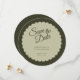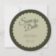 Elegant yet modern and with a touch of retro glam, this Wedding Save the Date card features a scalloped shaped circle, two shades of green and elegant script calligraphy. Customise this design with your own wedding information.