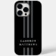 Elegant, black iPhone case with three dark grey lines running from top to bottom and your name across.
