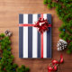 Elegant Dark Navy Blue and White Striped Pattern Wrapping Paper