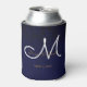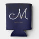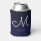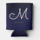 Elegant Dark Navy Blue Gold White Monogram Floral Can Cooler