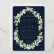 Hand painted snowberries and stems of eucalyptus arranged into a beautiful botanical frame against a dark navy background. The text and scattered dots on the front of the card are foil pressed. All text is fully editable. Please view this Collection in my store for invitations with alternative wording options, different colours and for coordinating items.