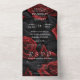Elegant Dark Red Gothic Floral Rose on Black Email All In One Invitation