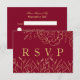Elegant Dark Red with Gold Sketched Flowers RSVP Card