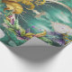 This is an elegant wrapping paper featuring Mardi Gras colours and decorative objects on an ink oil background. The main colour used in the design is green with a touch of gold, purple and white. This wrapping paper is perfect to wrap gifts for a variety of occasions.