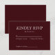 Complete your wedding suite with this elegant deep burgundy RSVP card, crafted for couples who appreciate timeless sophistication and refined simplicity. The design is built around a rich, deep burgundy color palette that radiates warmth, romance, and old-world luxury. Clean lines and a minimal layout let the deep jewel tone take center stage, creating a response card that feels both formal and deeply romantic. The overall aesthetic leans into dark elegance — understated yet striking, making it a seamless match for dark romance, old money, classic formal, and winter or fall wedding themes. A beautifully cohesive addition to any deep burgundy wedding stationery suite.