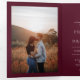 Classic style all in one tri-fold wedding invitation featuring a simple yet elegant design in a deep burgundy color that is perfect for a fall wedding or a winter / Christmas wedding. Use the template to add your favorite photos.