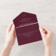 Classic style all in one wedding invitation featuring a simple yet elegant design in a deep burgundy color that is perfect for a fall wedding or a winter / Christmas wedding. Use the template to add a QR code or remove it in the design editing tool.