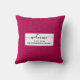 Elegant deep pink WELCOME TO OUR HOME throw pillow with customisable text so you can create your own and/or add your name. Elegant script typography and subtle tiled pattern saying WELCOME makes this a stylish addition to the entrance of your home, your guest house or to your business reception area. Available in other colours. Matching guest book available.