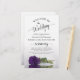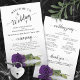 These wedding programs are elegant and tasteful, while still being budget friendly. The design features a single long stemmed deep royal purple coloured rose lying on its side, reflecting in a pool of water with waves and ripples. The typography features lacy black script calligraphy, and there is room for details on the ceremony, the bridal party, and a short thank you.