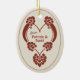 Oval Christmas ornament featuring an elegant retro style heart, deeply red against a background of ivory. As the heart picture is transparent the ivory background can be changed to any colour that you like.