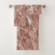 Richly-veined deep rose and cream marble texture background with diagonal gold-bordered accent cream marble with gold-banded label for your initial or monogram. Note: Marble and stone appearance achieved digitally. No marble used in the making of this product.