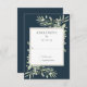 Elegant Deep Sea Blue Greenery Leaves Wedding RSVP