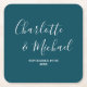 Elegant Deep Teal Script Minimalist Wedding Square Paper Coaster