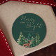 Rustic green trees and deer "Merry and bright" personalised stickers.
