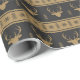 This beautifully designed wrapping paper features subtle gold deer heads against a rich black background, embellished with delicate snowflakes and evergreen trees. Perfect for wrapping holiday gifts, it adds a touch of elegance and festive spirit to your Christmas celebrations.