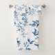 Elegantly drawn classic and clean floral featuring delicate Delft blue vines, flowers and curving branches on white background.