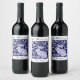 Elegant Delft Navy Blue Bunny Rabbit Birds Custom Wine Label