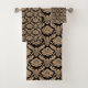 Elegant black and gold damask pattern featuring intricate scrolling florals and ornamental details, perfect for adding a touch of sophistication to any product. Classic yet versatile, this timeless design complements both modern and vintage styles.