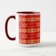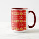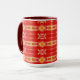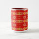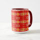 Barn red with a yellow floral patterned print. The barn red background can be switched to any colour. Text can be added to personalise even more.