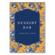 This is a vintage style image featuring an elegant dessert bar invitation set against a vibrant orange background adorned with intricate blue floral patterns. The central navy blue panel, framed by delicate white borders, invites guests to indulge in sweet treats with the warm and inviting message "PLEASE TAKE A TREAT!" It exudes a classic charm perfect for enhancing any celebration or event with its timeless appeal.