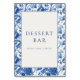 This is a vintage style image featuring an elegant dessert bar invitation, framed by intricate blue floral patterns. The central white panel stands out beautifully against the detailed botanical border, creating a sophisticated and inviting look. Perfect for adding a touch of charm to any event, this design evokes feelings of warmth and celebration, making it ideal for weddings or parties where guests are invited to indulge in sweet treats.