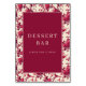 This is a vintage style image featuring an elegant dessert bar invitation. The background showcases intricate red floral patterns on a cream backdrop, creating a sophisticated and inviting atmosphere. At the centre, a deep maroon rectangle with white text announces "DESSERT BAR" in bold letters, followed by the charming phrase "PLEASE TAKE A TREAT!" It exudes warmth and hospitality, perfect for adding a touch of class to any event or gathering.