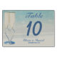 Elegant destination beach tropical wedding Table Number. A coastal photo and two wedding champagne glasses with heart-shaped base. Ideal for summer beach weddings. You can change text or background.