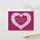 Classic looking wedding save the date postcard. This card is designed with a graphic effect diamond heart on a dark pink / purple background. Design by Sarah Trett.