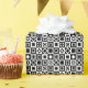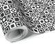An intricate pattern of diamond and square box shapes creates a unique chequered design. In black and white, this gift wrapping paper adds a touch of elegance to gift giving.