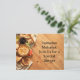 Elegant dinner invitation postcard featuring a traditional Middle Eastern breakfast table with hummus, olives, flatbread, and fresh vegetables on a rustic wooden background. The warm sunlight and large copy space make it perfect for Ramadan dinners, Eid celebrations, family gatherings, restaurant events, or cultural dinner parties. Easily customize the text to create a beautiful invitation for your special occasion.