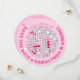Announce your wedding in bright disco style. This energetic disco ball wedding save the date exudes groovy elegance. This fun round wedding Save the Date features a sparking disco ball circled by SAVE THE DATE and your names. An inner arched section highlights the date and location. Shades of pink and hot pink on a light pink background, this save the date is distinctive and works for an elegant or tropical disco theme. Retro 70s fonts add a groovy touch. On the back is room for additional messaging and a QR code for your wedding website.