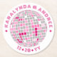 Elegant Disco Ball Pink White Round Wedding Paper Coaster