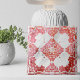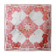 Delight in the captivating allure of red floral and leafy motifs gracefully adorning a pristine white backdrop, reminiscent of a timeless marble allure with a tasteful distressed finish. Enhance your living spaces with this remarkable decorative ceramic tile, a symbol of refinement and beauty that will undoubtedly elevate the ambiance of any room.