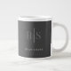 Elegant DIY Grey Monogram & White Name, Dark Grey Large Coffee Mug