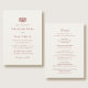 Celebrate your special day with this elegant wedding invitation design. Featuring a vintage floral motif with stylized flowers and decorative leaves, this invitation perfectly captures the charm of a romantic, vintage-inspired wedding theme. The simple layout is enhanced by classic serif and script typography, creating an enduring look that suits both intimate weddings and traditional ceremonies. Personalize the template with the bride and groom’s names, wedding date, and venue. This two-sided invitation offers both style and functionality; event details like RSVP information, reception location, accommodations, transportation, and the wedding website are printed on the back, creating a truly bespoke design for your big day. Printing colors: dark terracotta red, and warm off-white, or customize the colors to suit your scheme. Available as a printed invitation or a digital download. Explore the online collection for matching designs!