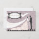 Elegant dusky pink and black formal rsvp wedding flat cards / invitations with a beautiful romantic bride and groom vector illustration and cute white doves carrying love hearts on a pretty ornate dusky pink roses design background. On the back of the invites are two lovely white doves and text template for you to personalise with your event details. Classy, trendy, chic modern invites with a glamourous vintage elegance look. Perfect for a spring, summer, fall / autumn or winter event. I have matching products in my store. PLEASE NOTE - ALL INVITATIONS ON ZAZZLE HAVE FLAT PRINTED IMAGES. If you need assistance customising your product please contact me through my store. I will be happy to help.