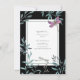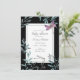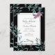 This elegant Bridal Shower features two watercolor dragonflies, one in shades of blue and green with iridescent wings and the other with wings in shades of purple and pink. They are resting on a simple arrangement of natural watercolor garden greenery in shades of green, blue, grey and brown on a black background. It's a great design for girls and neutral parties.