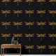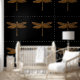 Elegant, Dramatic Black and Gold Dragonfly Fantasy Wallpaper